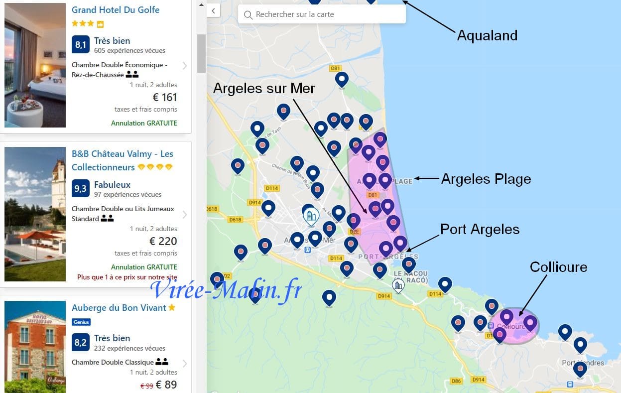 - Cliquez ici pour agrandir cet HôtelMap – Où loger à Argeles sur Mer :