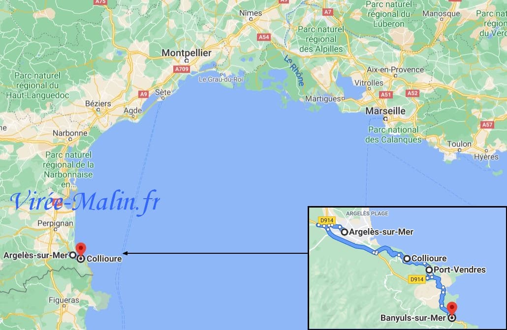 - Cliquez ici pour agrandir cette GoogleMap – Situation géographique – Argelès sur Mer :