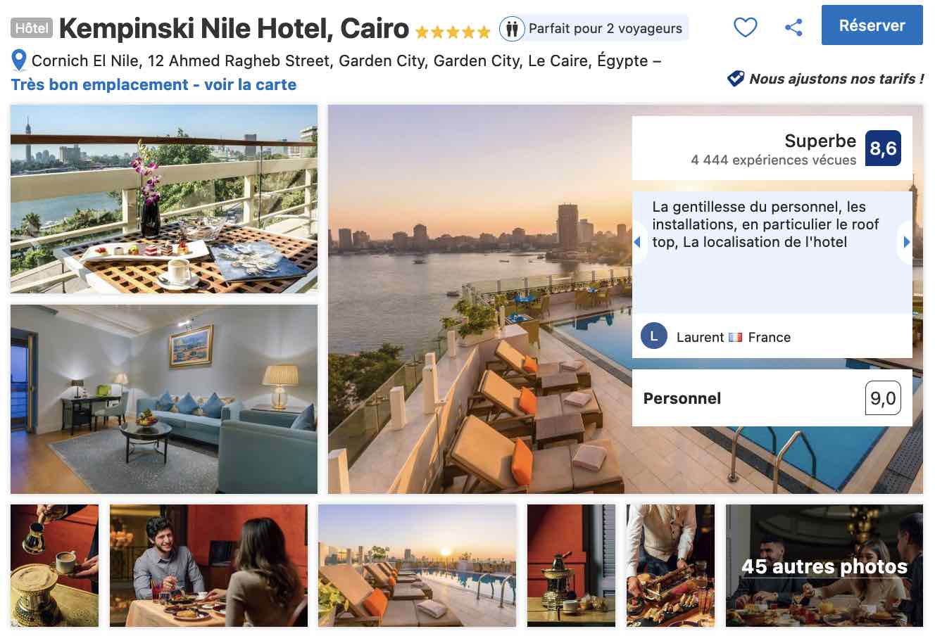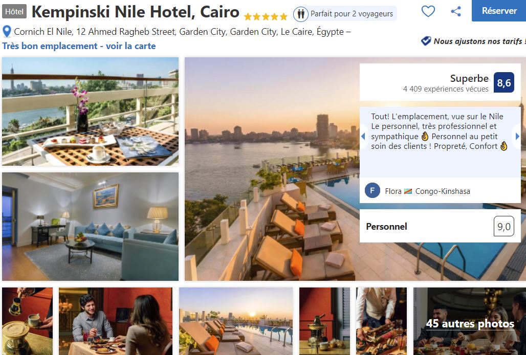 Vous avez aussi, toujours dans le même secteur, le Kempinski, une très belle adresse avec un rooftop vous proposant une vue incroyable sur le Nil. Le petit déjeuner est excellent et le Jazz Bar est incroyable! Une très belle adresse !