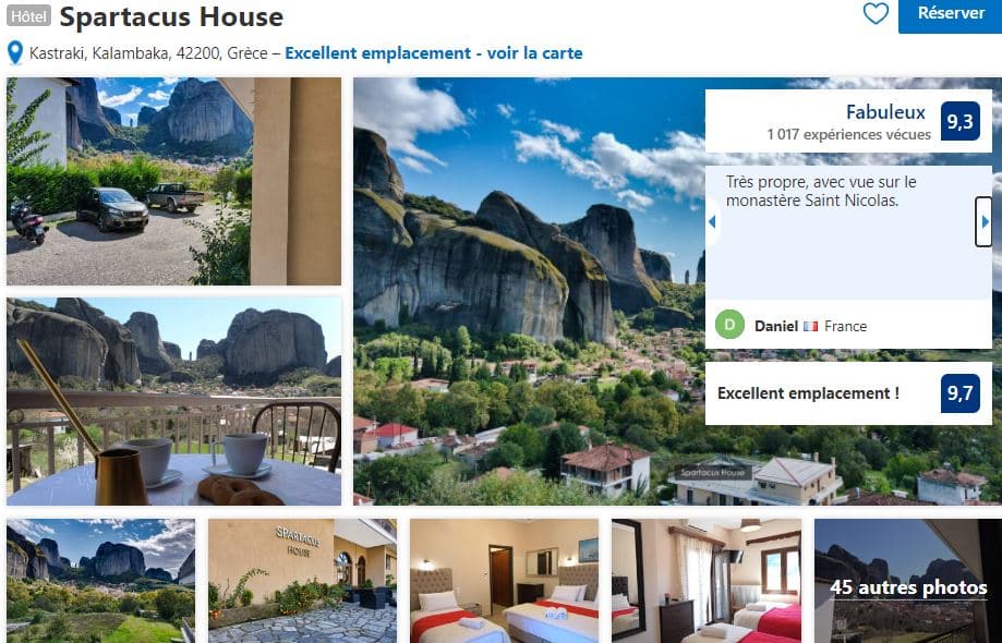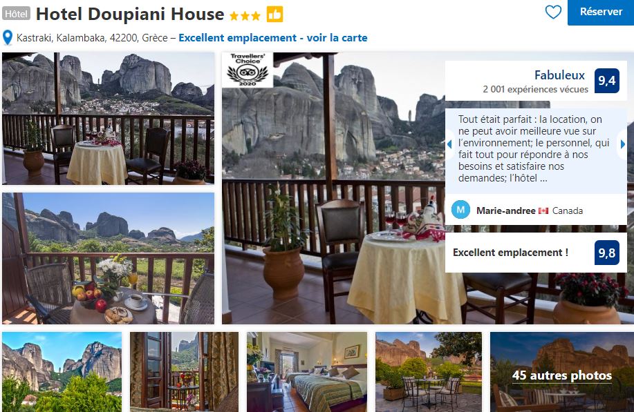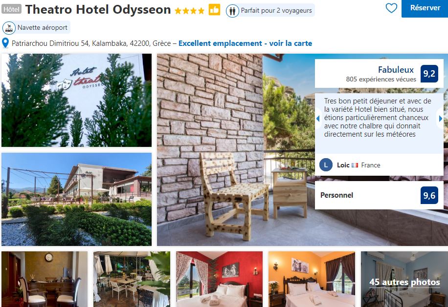 Dans ce cas optez pour la zone orange, à Kalambaka. Vous avez l’hôtel Odysseon qui proposent des chambres avec vue sur les Météores, lisez les avis.