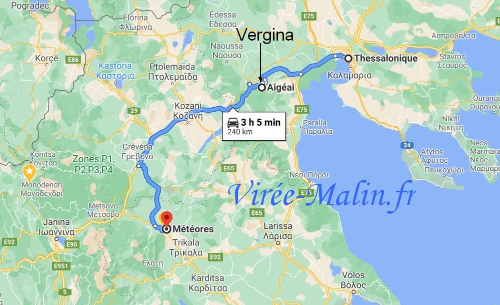 - Cliquez ici pour agrandir cette GoogleMap – Circuit Thessalonique Météores (3h de route) :