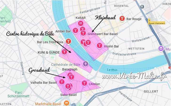 Si vous êtes tombé sur mon article dédié à la visite de Bâle, ou bien si vous me faite déjà suffisement confiance, alors je vous invite à trouver séjourner à Bâle dans la zone violette ci-dessous.