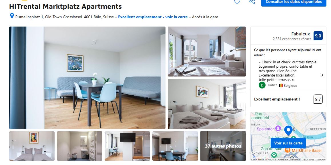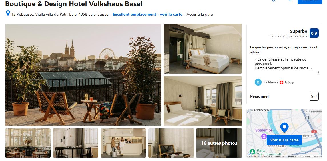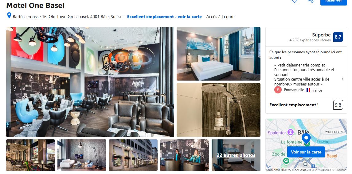 - Pour commencer, récement rénové, je vous conseil l’hôtel Hotel D- Basel – Fully Renovated 2025.