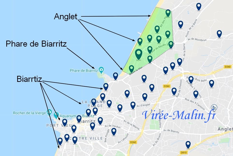 Quoiqu’il en soit, si vous venez pour le surf et que vous ne voulez pas traverser Biarritz votre planche de surf sous le bras, voilà les zones où il va falloir chercher votre hôtel…
