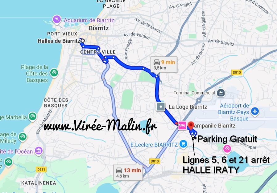 Un grand parking gratuit à Biarritz (7/7j et 24/24h) a été mis en place (avec système de navette) qui permet de rejoindre le centre-ville de Biarritz en 20 minutes. Il se trouve à côté de l’aéroport et s’appelle « Parking Relais Txik Txak Halle Iraty » et les bus 5, 6 et 21 arrêts y passent.
