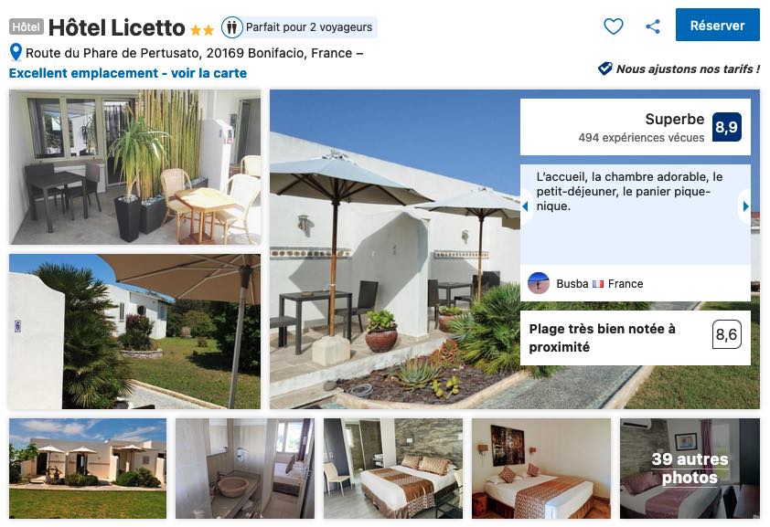 Enfin, pour loger dans le quartier est de Bonifacio, Monte Leone, je vous recommande de réserver vos nuits à l’hôtel Licetto qui vous propose des chambres tout confort dans un parc naturel de plusieurs hectares avec vue sur mer à deux kilomètres du centre de Bonifacio.