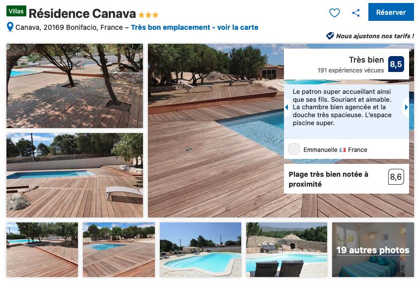 La Résidence Canava, dans le quartier de Caravello Morto propose des chambres à partir de 70 euros en basse saison, je vous recommande de vous renseigner de la disponibilité et des tarifs pratiqués selon la période de votre voyage à Bonifacio.