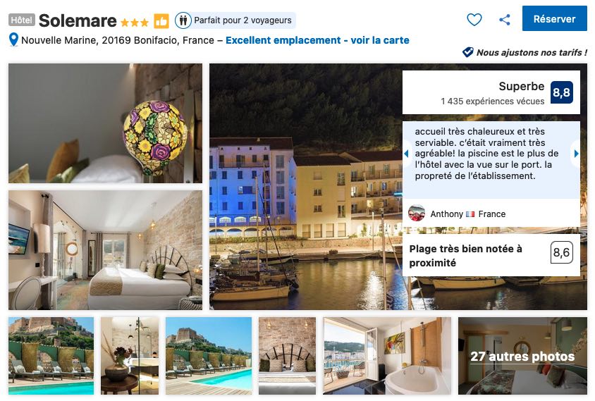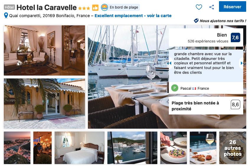 J’attire votre attention sur le fait que les tarifs sont très volatiles, surtout en période de forte affluence, comme pour les autres adresses, je vous conseille la plus grande vigilance et de réserver dès que vous connaissez vos dates de séjour à Bonifacio.