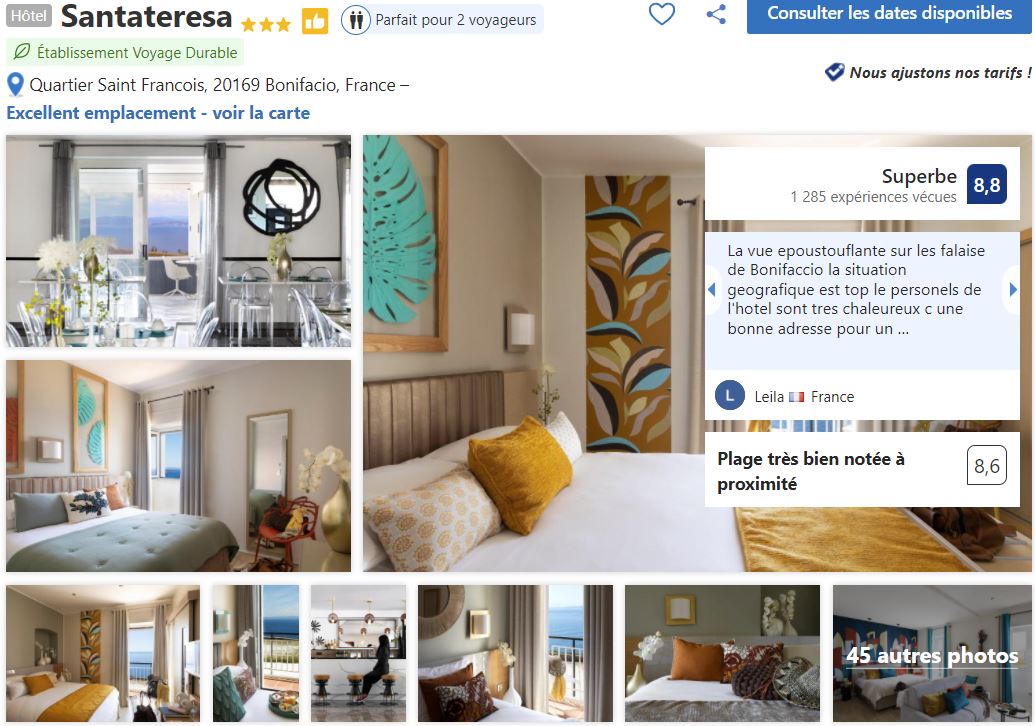 Après vous avez aussi l’hôtel Santateresa situé à deux pas du cimetière marin et donc à deux pas du parking qui se trouvent tout au bout de la ville. Donc si vous vous rendez à Bonifacio hors saison d’été vous pouvez jetez un œil à cette bonne adresse!