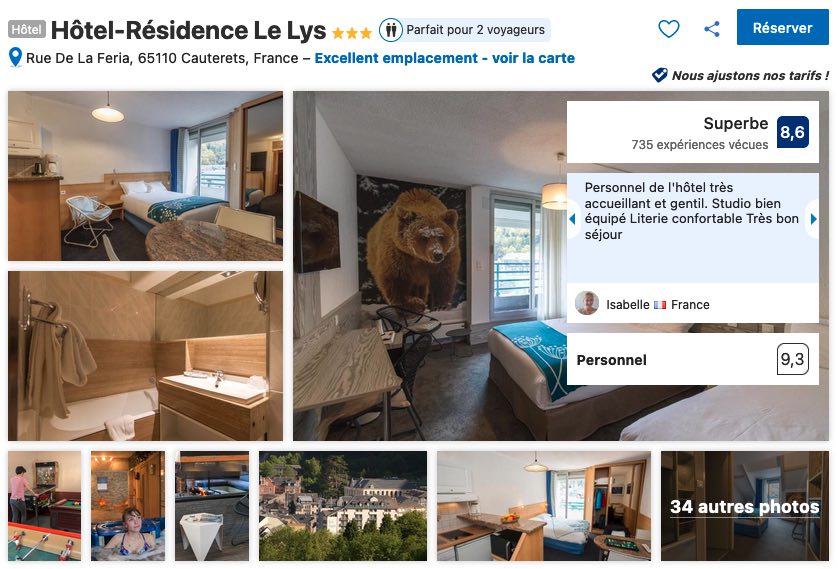 Pour ceux qui veulent profiter du confort et des services des hôtels et résidences hôtelières, je vous conseille pour un premier choix d’orienter votre réservation sur l’Hôtel Résidence Les Lys.