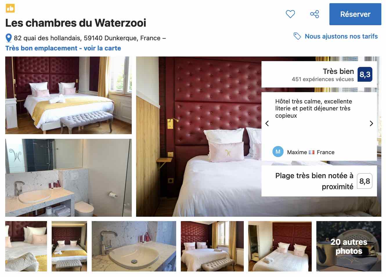 Autre adresse, légèrement moins chère avec des chambres doubles à partir de 80 euros la nuit et à une centaine de mètres de l’Hôtel de Ville de Dunkerque, vous avez Les Chambres du Waterzooi.