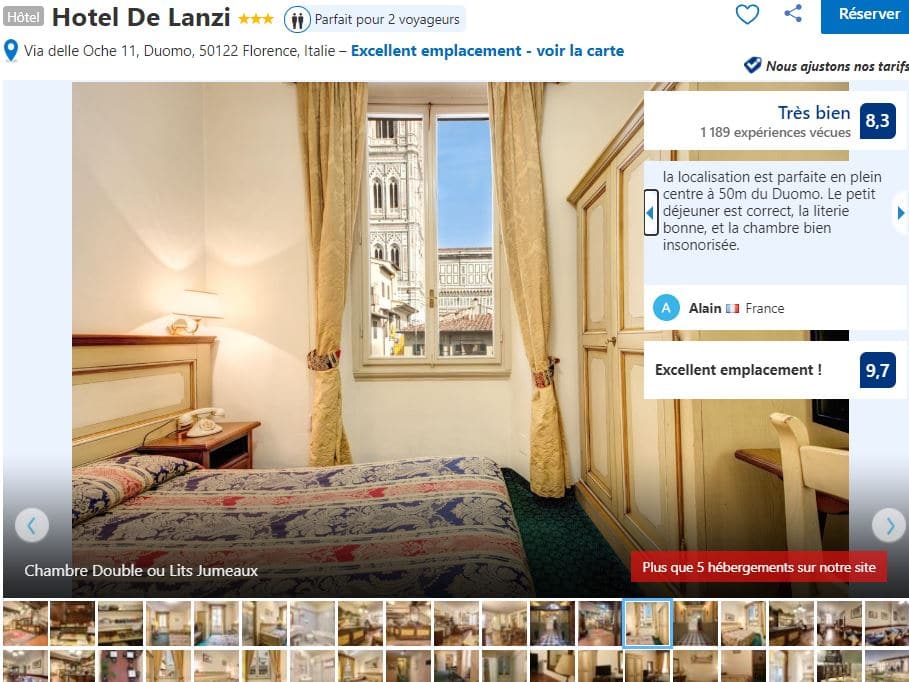Une autre adresse bien placé avec un rapport qualité/prix interessant c’est l’hôtel De Lanzi, ils proposent souvent des discounts, regardez les avis.