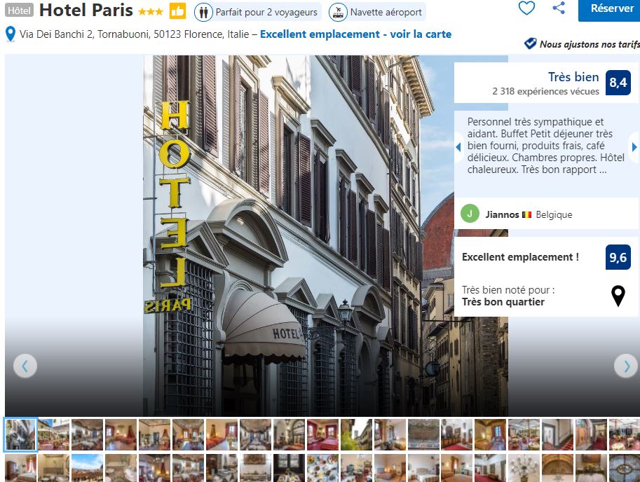 Nous passons notre 1e nuit à Florence dans l’hôtel que tu as conseillé: Paris Hôtel. L’accueil était très bien et nous avons eu la seule chambre avec balcon avec vue sur les toits de Florence! C’est parfait! Merci!