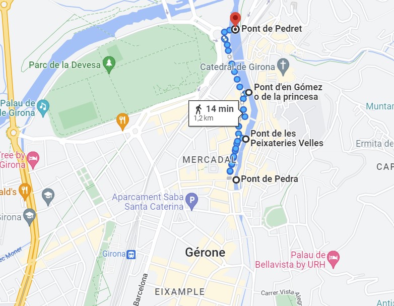 De quoi loger à Gérone en léger retrait de l’animation du centre-ville tout en restant à distance raisonnable de marche des principaux sites à visiter avec des bars et des restaurants dans les alentours proches.
