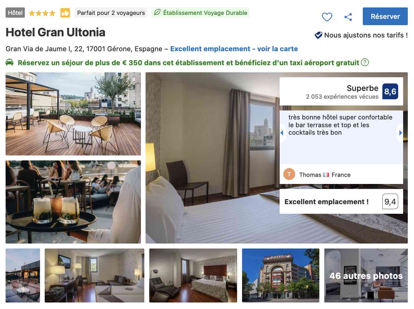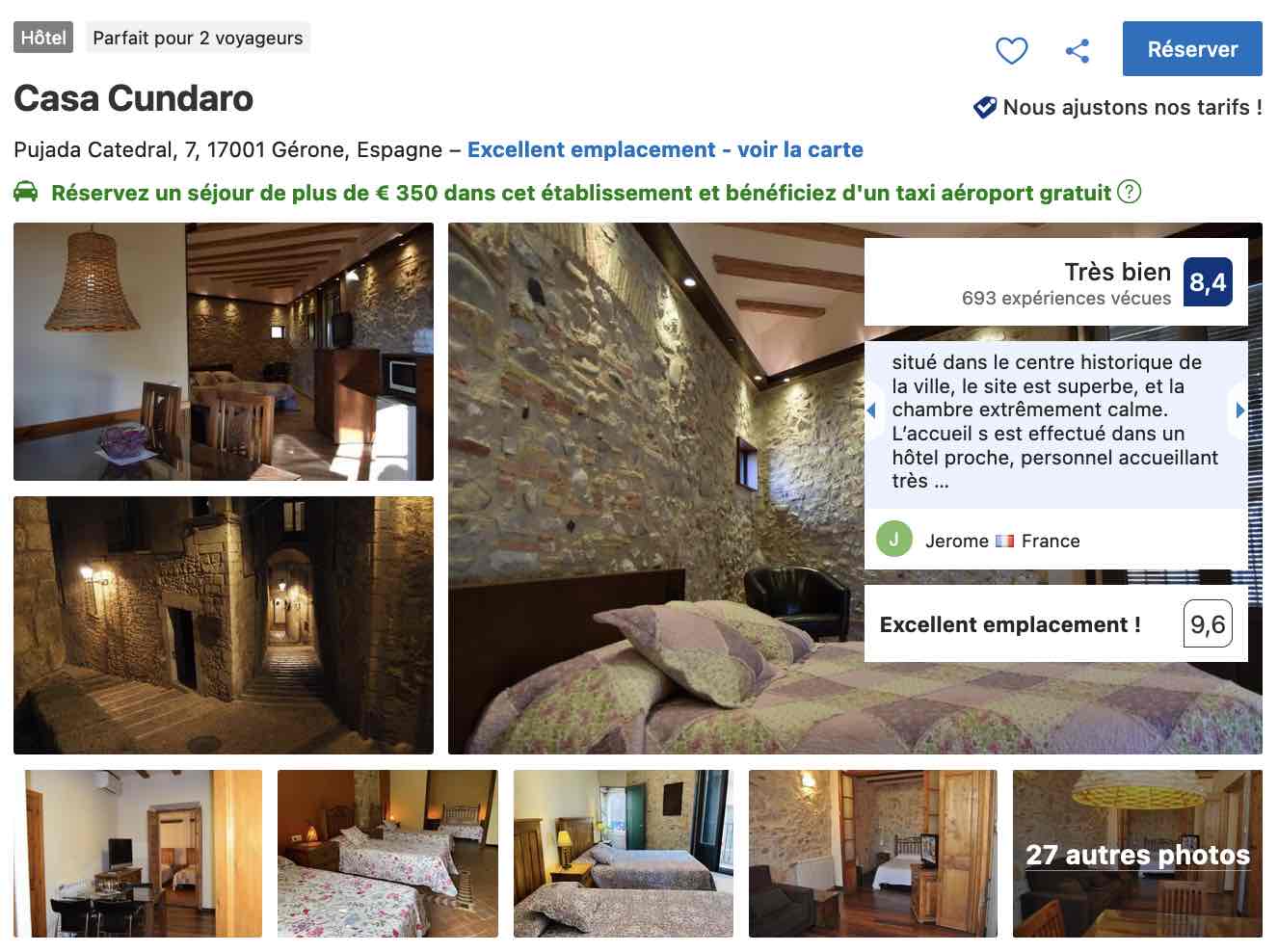 Comme d’habitude, et encore plus si vous voyagez à Gérone en pleine période estivale, je vous recommande de réserver le plus tôt possible votre séjour. Cela vous assure une parfaite disponibilité et des tarifs plus avantageux.