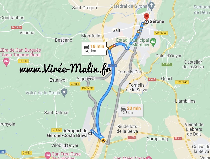 Depuis l’aéroport de Gérone, vous pourrez rejoindre Gérone en moins de 20 minutes en voiture. Si vous comptez visiter Barcelone, il faudra compter 1h15 de voiture depuis l’aéroport de Gérone. Vous avez aussi des lignes de bus vous permettant de rejoindre Gérone mais aussi de rejoindre Barcelone.