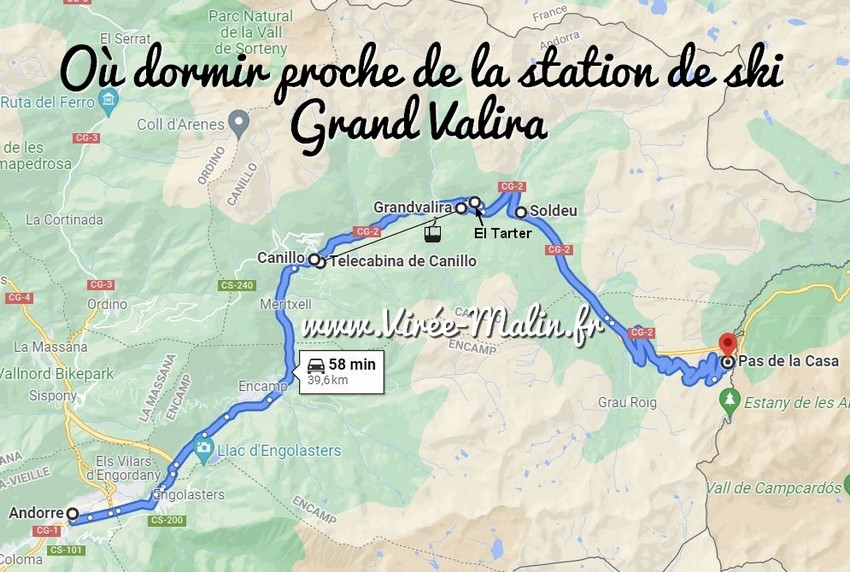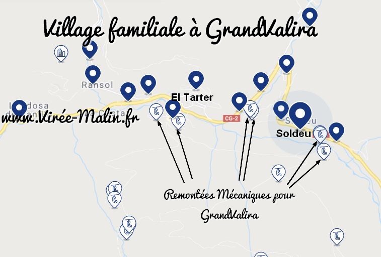 - Cliquez ici pour agrandir cette GoogleMap – Commen rejoindre la station de ski GrandValira depuis Andorre :