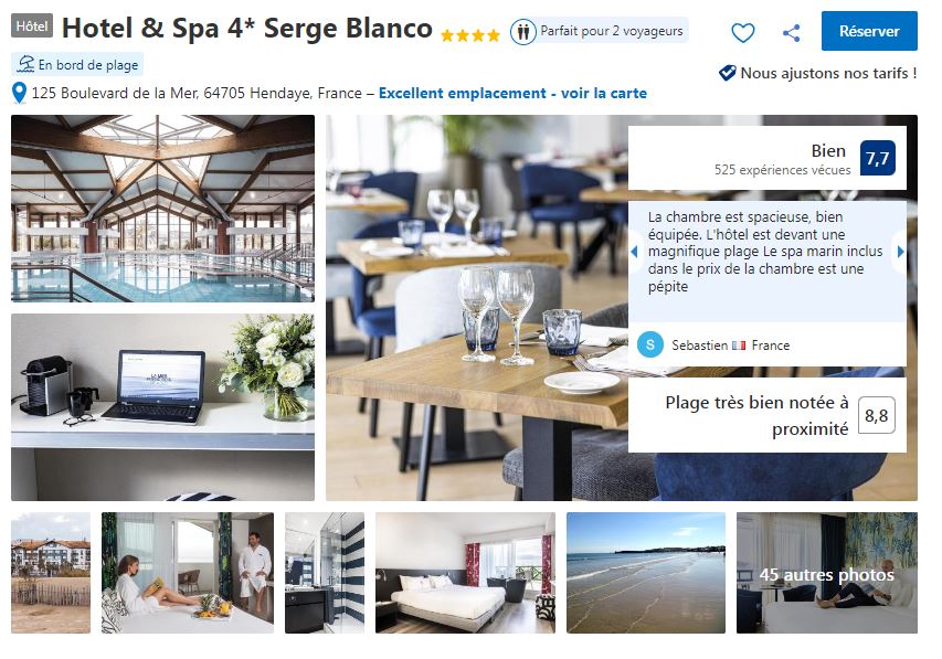 Je vous conseille ensuite le bien plus renommé hôtel & Spa Serge Blanco. J’y ai passé un week-end et j’ai adoré. Je vous conseille d’arriver assez tôt pour profiter du SPA et vous relaxer à deux avec vue mer. D’ailleurs c’est un hôtel que je conseille aussi bien pour des week-ends en été qu’en hiver.