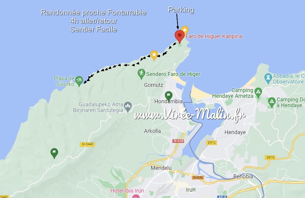 A deux pas d’Hondarribia, vous avez un magnifique sentier de randonnée, n’oubliez pas le pique nique. Lien GoogleMap pour vous montrer où vous pouvez vous garer. Vous trouverez