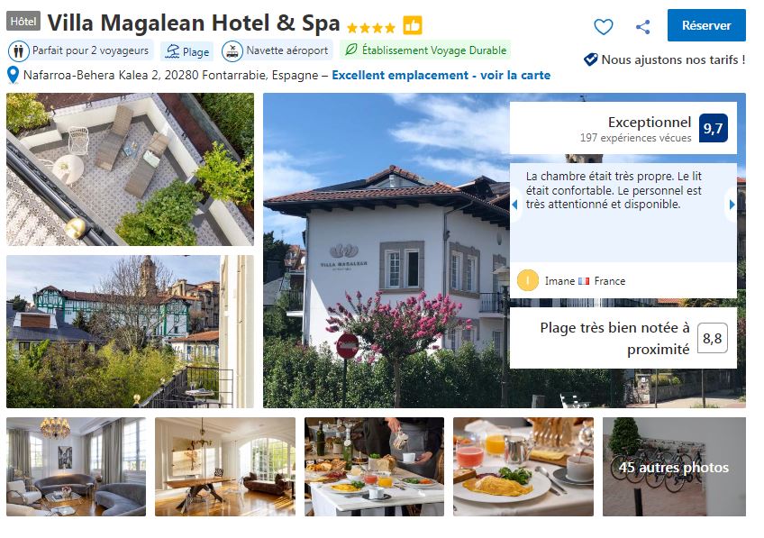 Pour commencer, je vous conseille la Villa Magalean Hôtel & Spa : Situés non pas à Hendaye même, mais à Fontarrabie.