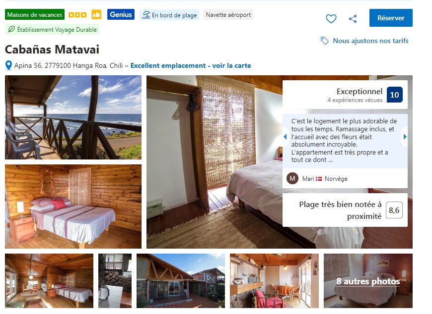 Je vous le conseille pour son rapport qualité prix, disposant d’excellents retours de nos voyageurs, proche de la plage et à des prix à partir de 90 euros la nuit. Une bonne adresse si vous cherchez où loger sur l’île de Pâques!