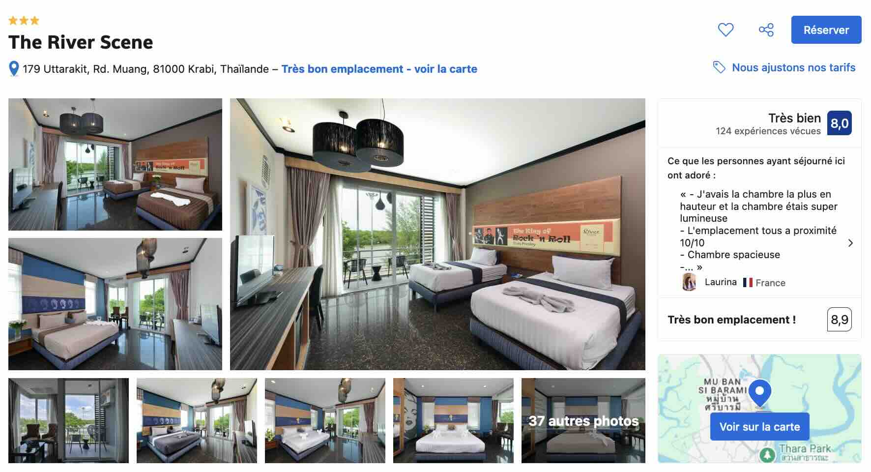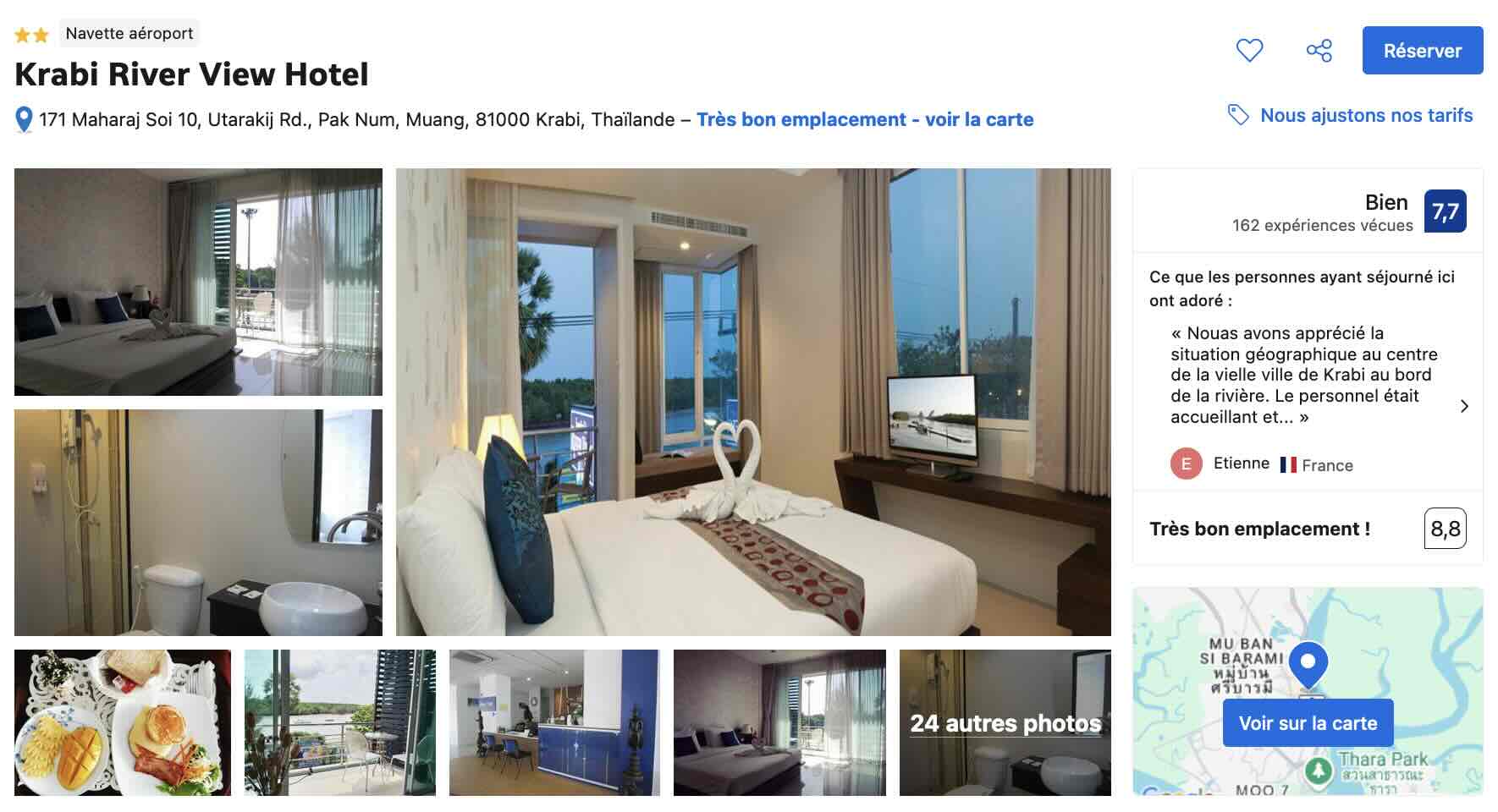 Krabi est traversé par une rivière qui porte le même nom. Si vous voulez dormir dans une chambre avec vue sur ce cours d’eau, c’est donc à l’hôtel Krabi River que je vous conseille de réserver votre nuit. En dormant ici, vous êtes également à proximité immédiate du marché de Krabi et vous pouvez demander à la réception pour organiser vos excursions ou réserver vos traversées en bateau vers les îles.