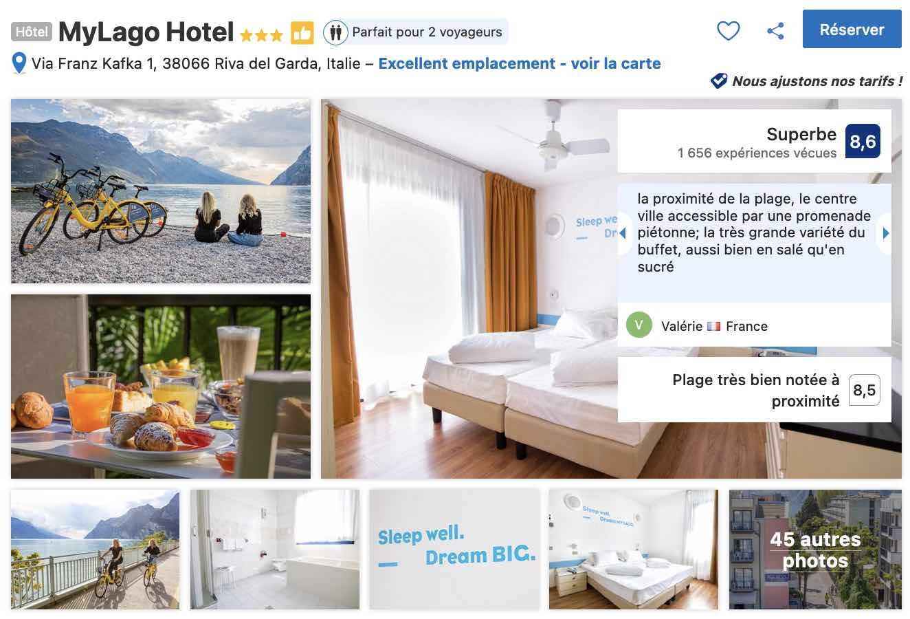 L’intérêt porté par les nombreux touristes à cette petite bourgade au nord du lac de Garde provoque une petite flambée des tarifs, surtout à l’approche de l’été. Je vous conseille donc de vous éloigner très légèrement des berges du lac pour choisir de dormir à Riva del Garda dans le MyLago Hôtel à cinq minutes de la plage et à 15 minutes de marche du centre-ville. Vous disposerez également d’une place de parking réservée aux résidents.