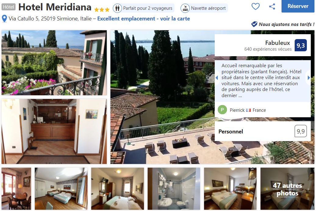 Une autre bonne adresse située en plein cœur de Sirmione avec un bon rapport qualité/prix, le Meridianna. Les propriétaires parlent français et pourront en plus vous donner encore plus de conseils pour votre séjour au lac de Garde.