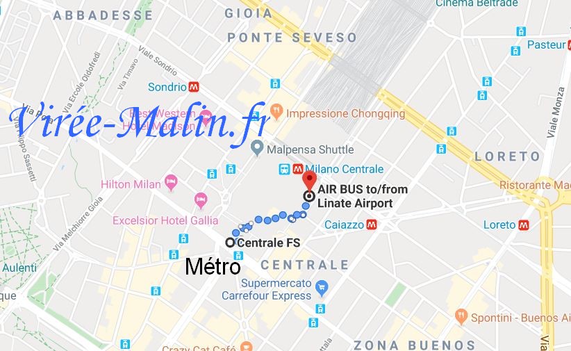 Comptez 15 minutes de métro pour rejoindre la gare de Milan (c’est à la gare qu’il y a les bus pour le transfert jusqu’à l’aéroport).