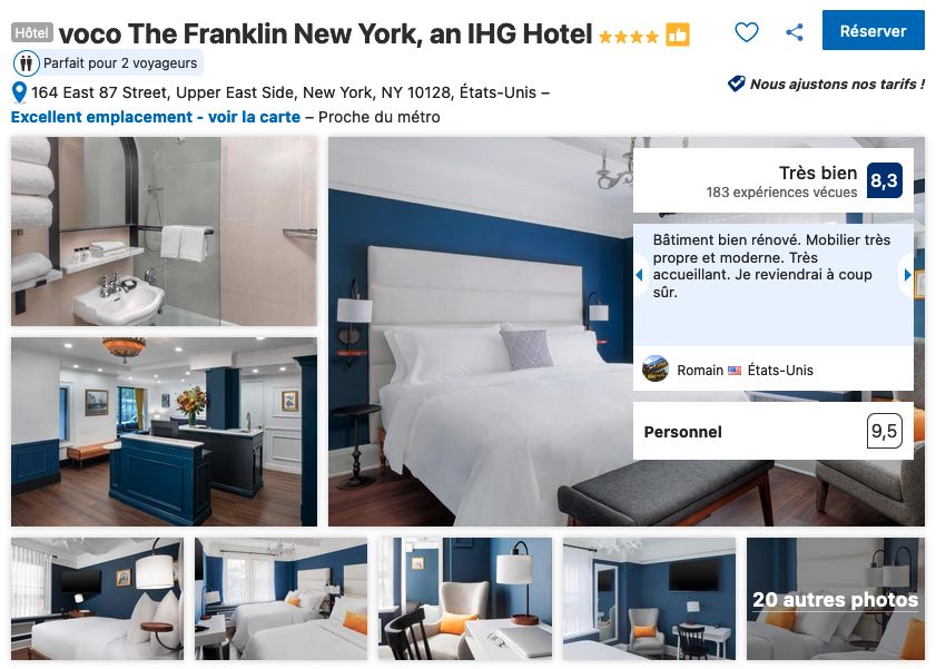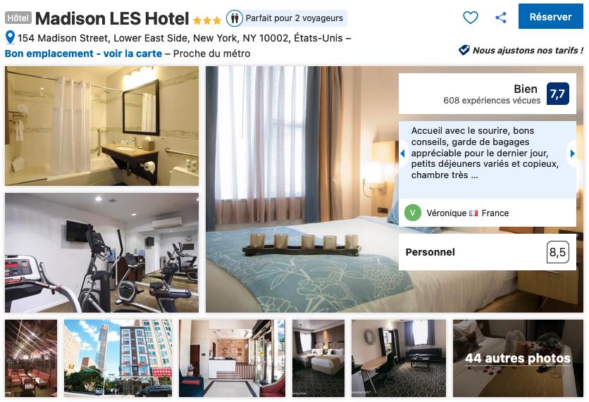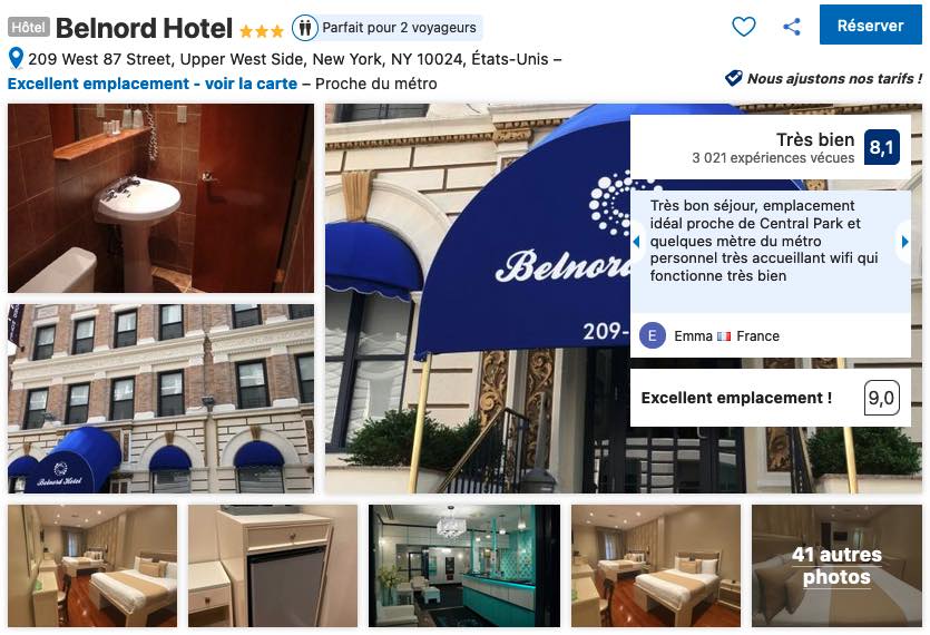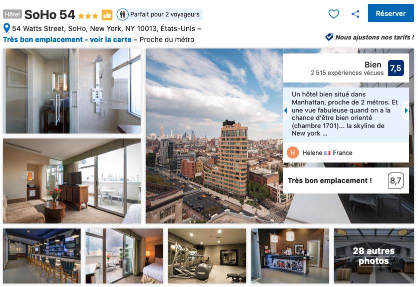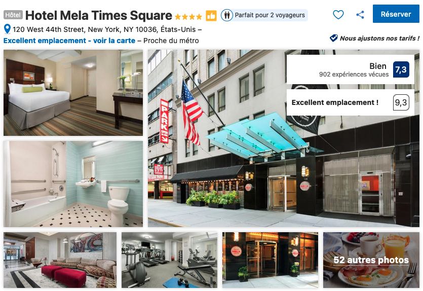 - Voir les hôtels qui se trouvent dans la zone (Time Square) que je vous conseille (lien Booking.com):
