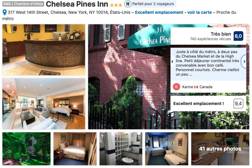 - Le Chelsea Inn, à la limite du quartier Greewich Village, c’est un bon plan, car bien placé et le quartier est sympa, à voir!