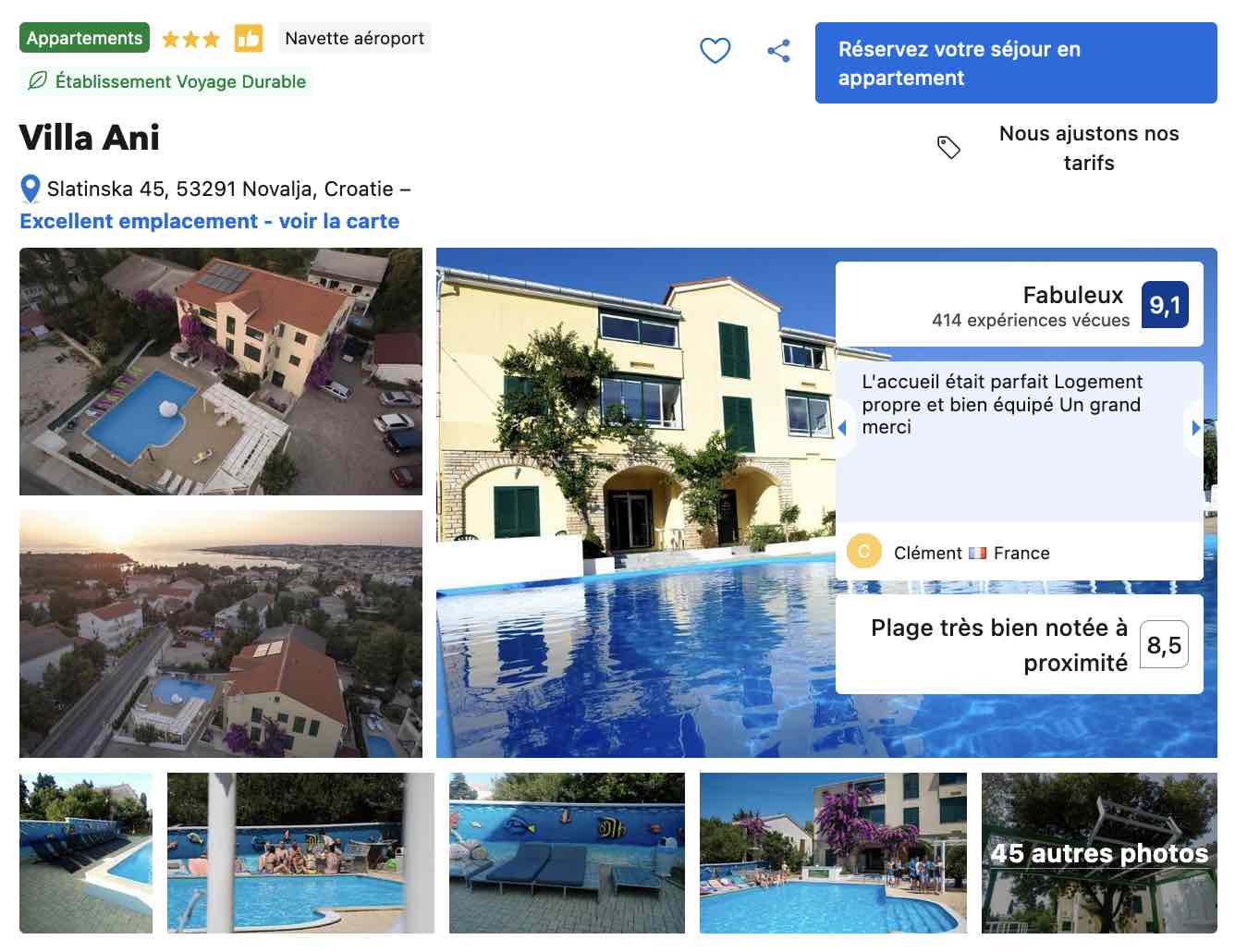 La ville de Novalja n’est pas très bien dotée en termes d’établissements hôteliers. Par contre, vous n’aurez aucun mal à trouver un appartement à louer, toujours en réservant votre séjour tôt !