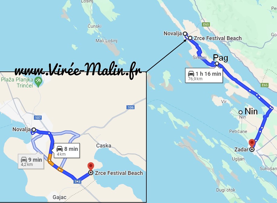 Tout d’abord sachez que le Reggaeton Beach Festival ou le Zrce Festival Beach est situé à 7 minutes en voiture de la petite ville de Novalja (50 minutes à pied).