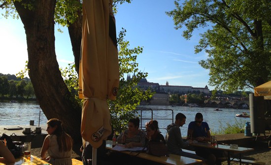 Le coucher de soleil est un excellent moment pour y être. Ils ont des bières bon marché, musique live et 2 barbecues pour des en-cas. L’ambiance est très chaleureuse. Allez-y!Adresse: Smetanovo nábřeží 995/6, 110 00 Praha, République tchèque