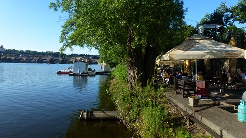 Pour finir une journée je dois avouer que le Kristian Marco riverside cafe a été mon coup de cœur, d’ailleurs j’y suis allé 2 fois. Situé entre le pont Charles et le pont Most Legii (juste à côté de ce dernier), c’est un lieu vraiment très agréable, C’est un bar en plein air sur la rivière, offrant des vues magnifiques sur la vieille ville et le château.