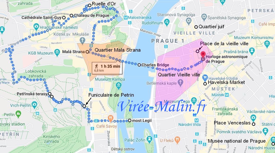Pour ceux qui sont pressés, je vous conseille 2 zones pour loger à Prague, la zone violette (côté vieille ville) et la zone orange (quartier Mala Strana). Ces 2 zones sont reliés par le magnifique pont Charles et c’est vraiment dans l’un de ces deux quartiers que vous devez trouver votre logement et pas ailleurs, je ne peux pas faire plus clair je crois :)