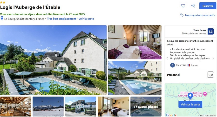 Je vais commencer par l’Auberge de l’Etable (situé à Montory) car c’est là où j’ai pris ma chambre d’hôtel pour être à côté de la passerelle d’Holzarte.