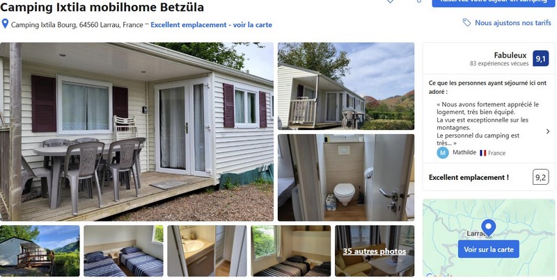 Si vous êtes plus camping, vous pouvez louer le mobilhome Betzüla qui se trouve au camping Ixtila. Lui aussi se trouve à 15 minutes de l’entrée du chemin de randonnée de la passerelle d’Holzarte.