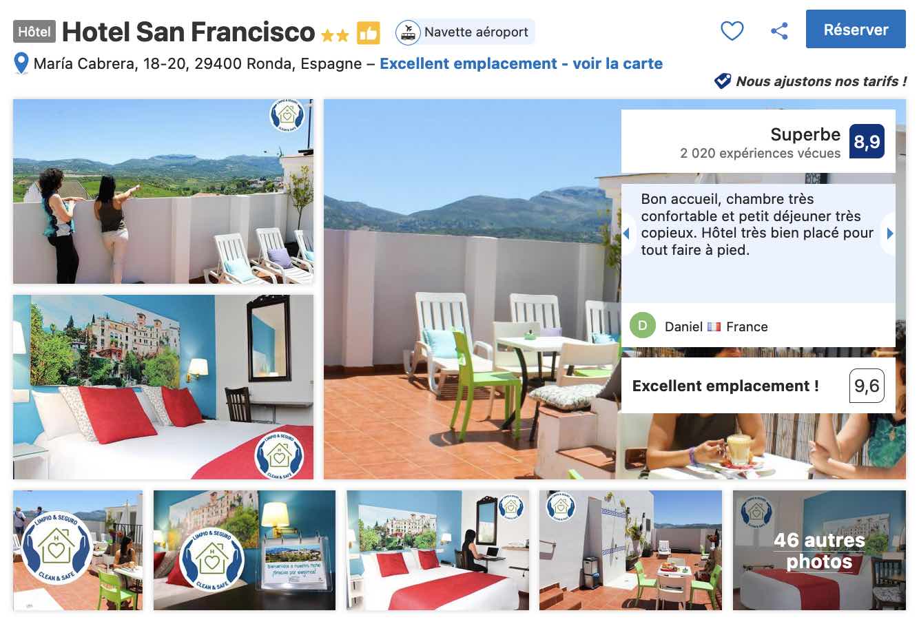 Pour un tarif plus abordable tout en logeant dans le centre historique de Ronda, vous avez l’Hôtel San Francisco avec une vue sur la vallée à couper le souffle d’après des voyageurs ayant testé cette adresse.
