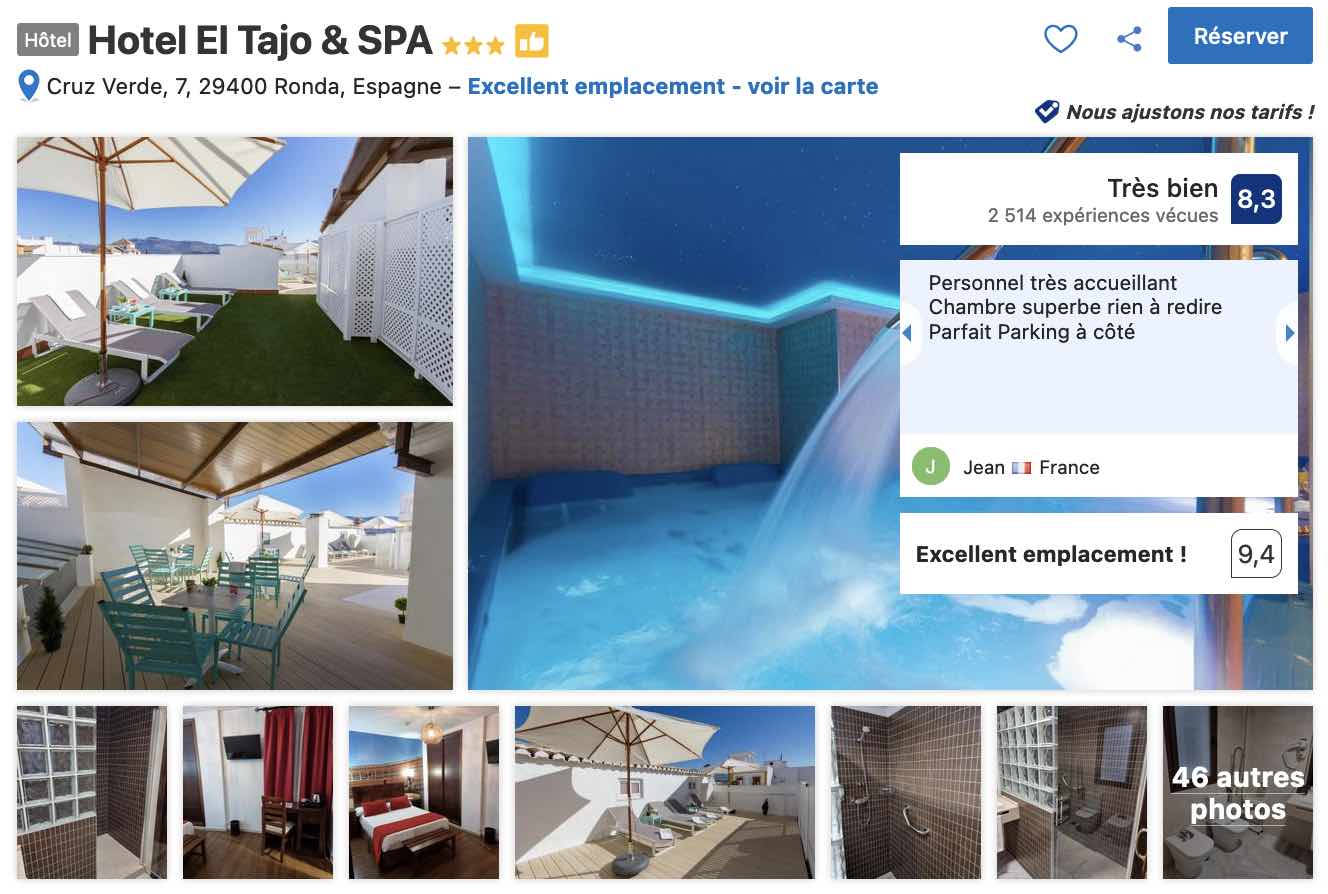 Autre adresse de choix, cette fois en plein cœur de la cité historique et pour des tarifs similaires : l’Hôtel Le Tage. Cet établissement dispose d’un espace spa et bien-être qui semble idéal, selon les commentaires laissés par les autres voyageurs. Vous pourrez vous détendre après une journée à arpenter les rues de Ronda. L’hôtel propose également des chambres familiales pour moins d’une centaine d’euros la nuit, un vrai point fort si vous voyagez en famille ou avec des amis.