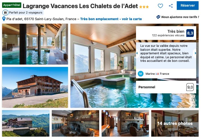Un peu plus bas, mais toujours dans les hauteurs de Saint-Lary-Soulan, vous trouvez aussi la résidence Lagrange Vacances Les Chalets de l’Adet. Un établissement haut de gamme dont les avis clients ne laissent aucun doute quant à la qualité des prestations et de l'emplacement.