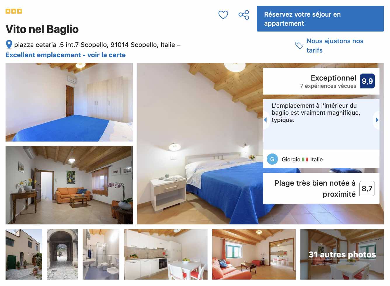 Pour la location d’un appartement, je vous conseille le Vito nel Baglio qui offre une vue sur la mer depuis les pièces du logement de 70m2 avec cuisine intégrée.