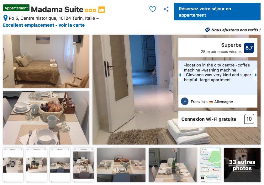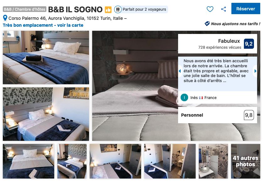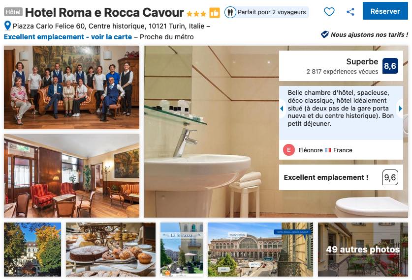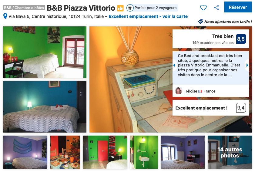 Attention, ce rapport qualité-prix lui vaut d’être souvent complet et pris d’assaut par les voyageurs qui auront pris les devants. Si vous voulez vous donner toutes les chances, je ne saurais que vous répéter de réserver vos nuits à Turin le plus tôt possible et dès la confirmation de vos billets d’avion ou de la date de votre départ.