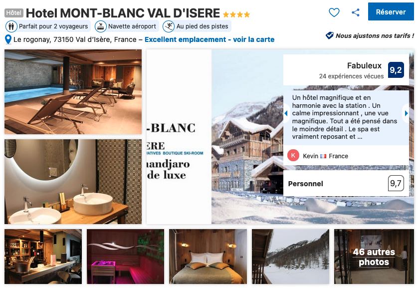 Ou encore l’Hôtel Mont Blanc Val d’Isère avec ses prestations haut de gamme à l’image de sa piscine intérieure ou de son centre bien-être