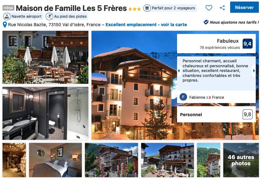 Même s’il est situé un peu plus au nord du centre du village, impossible de ne pas vous proposer de réserver votre séjour à la montagne à Val d’Isère dans la Maison de famille Les 5 Frères tant cette adresse semble avoir les faveurs de tous les voyageurs s’y étant arrêtés.