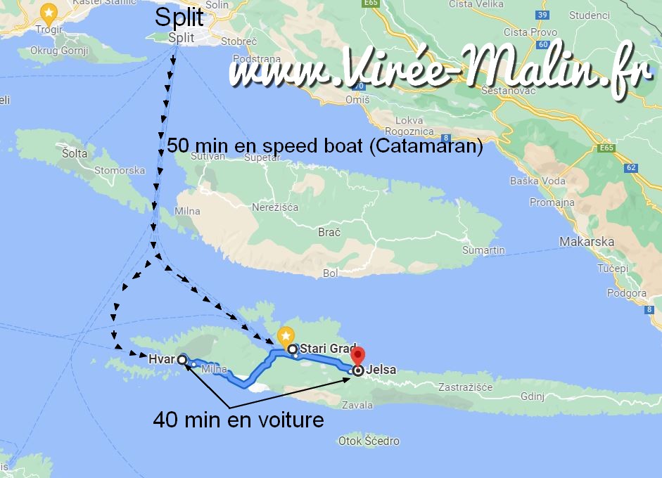 - Cliquez ici pour agrandir cet GoogleMap – Dans quelle ville dormir sur l’île de Hvar :