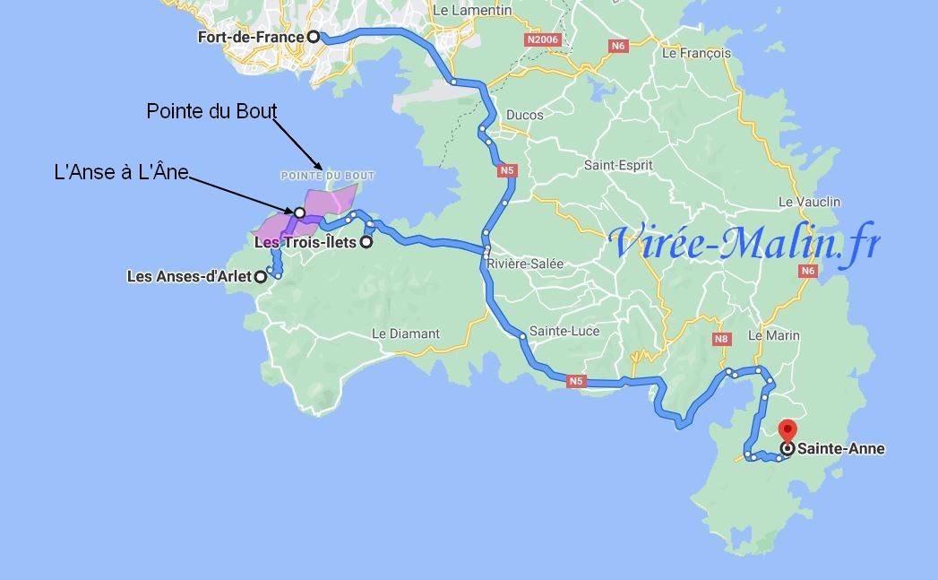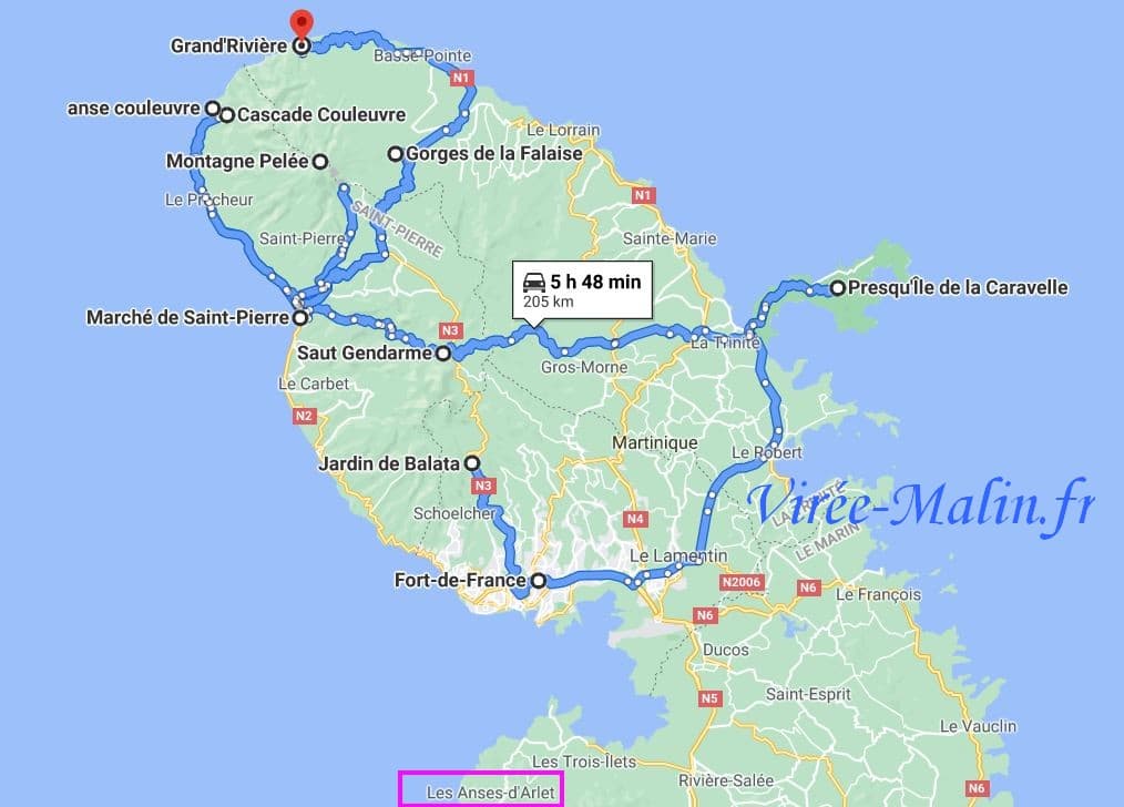 - Cliquez ici pour agrandir cette GoogleMap – Sites touristiques incontournables à faire en Martinique du Sud :