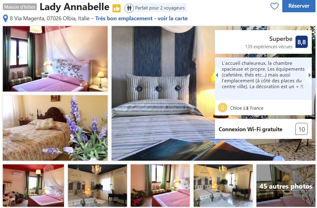 La maison d’hôtes Lady Annabelle qui, en plein mois d’août vous propose des chambres typiques, calmes et joliment décorées pour moins d’une centaine d’euros petits déjeuners inclus pour deux personnes.