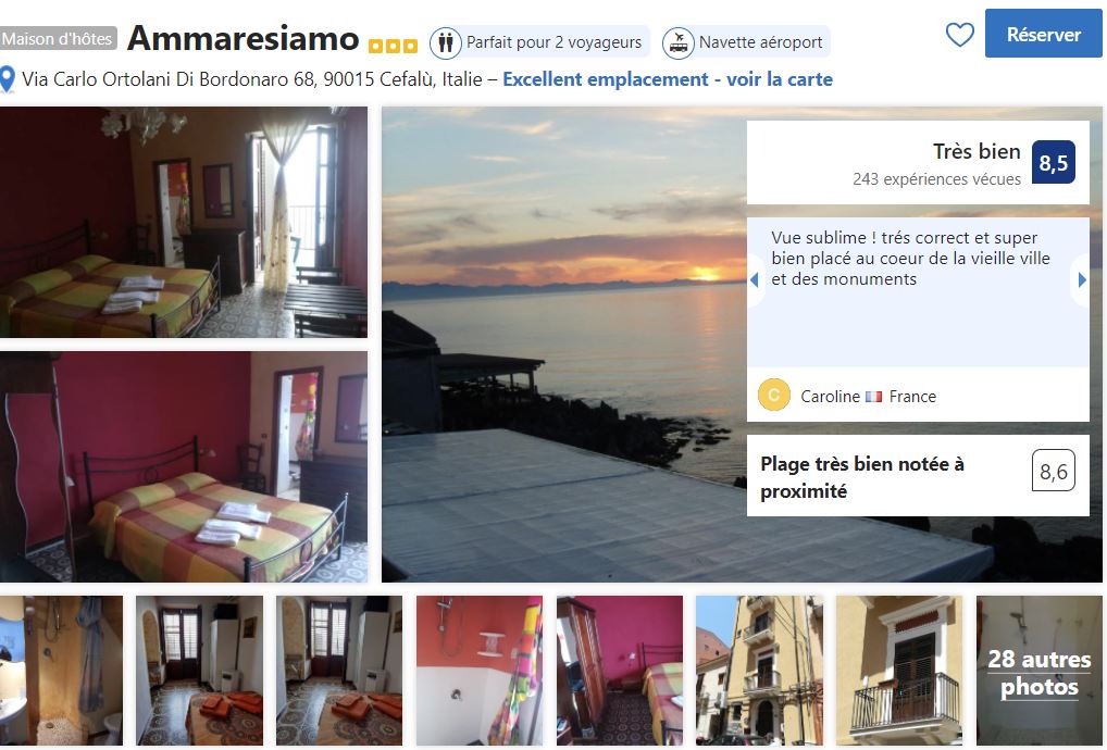 Pour cela, je vous propose de dormir à l’Ammaresiamo, une très belle maison d’hôtes qui vous propose des chambres directement en bord de mer avec une vue panoramique sur la mer Tyrrhénienne et une situation à moins de 400 mètres de la cathédrale de Cefalù et du centre de la ville avec ses nombreux bars et restaurants typiques. Comptez moins de 50€ pour une nuit avec balcon sur la mer.