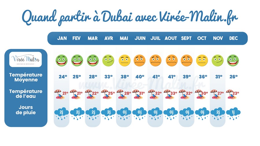 Si vous voulez visiter Dubaï en évitant le trop grand afflux de touristes et profiter de températures encore douces, même si c’est relatif pour la destination, alors le mois de janvier est le moment idéal. Vous pourrez aller à la rencontre du Burj Khalifa, de la vieille ville de Dubaï, de la mosquée Jumeirah ou encore pour visiter la grande mosquée Cheikh Zayed.